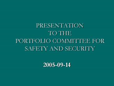 Title: PRESENTATION TO THE PORTFOLIO COMMITTEE FOR SAFETY AND SECURITY
