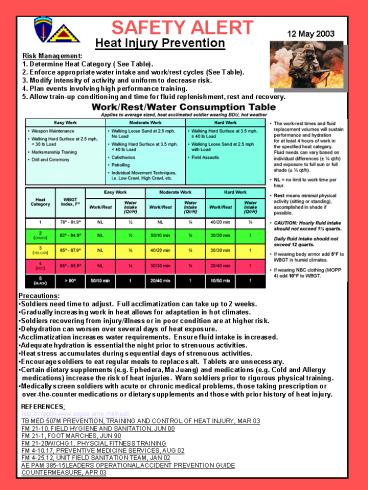 HEAT INJURY, MAR 03 FM 21-10, FIELD HYGIENE AND