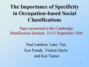 Title: The Importance of Specificity in Occupationbased Social Classifications