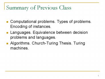 Summary of Previous Class PowerPoint PPT Presentation