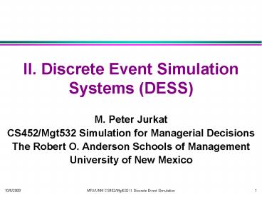 Title: II. Discrete Event Simulation Systems DESS