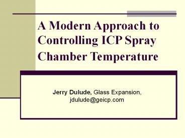 Title: A Modern Approach to Controlling ICP Spray Chamber Temperature