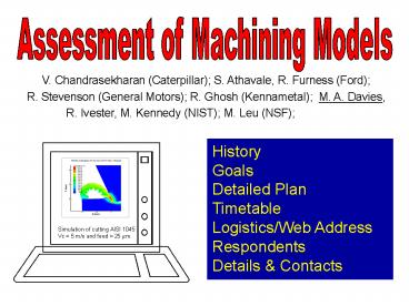 Machining Models (AMM) effort (Summer 1998) - Discussions continued at CIRP Athens where NIST