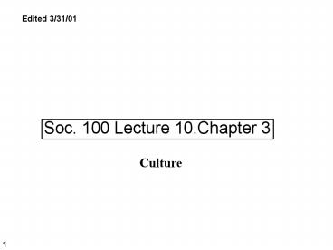 <Notice: Removed> Soc. 100 Lecture 10.Chapter 3 PowerPoint PPT Presentation