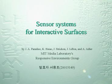 Sensor systems for Interactive Surfaces PowerPoint PPT Presentation