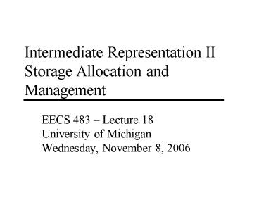 Title: Intermediate Representation II Storage Allocation and Management