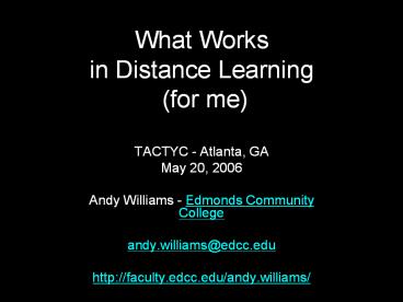 <Notice: Removed> What Works in Distance Learning (for me) PowerPoint PPT Presentation