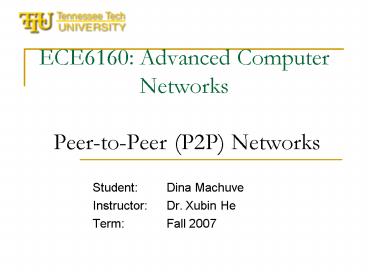 Title: ECE6160: Advanced Computer Networks PeertoPeer P2P Networks