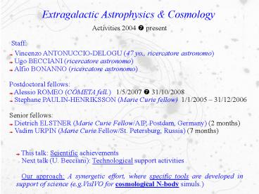 - Starting INAF-IASF, Palermo (A. Pagliaro, B.
