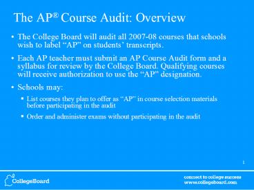 <Notice: Removed> The AP Course Audit: Overview PowerPoint PPT Presentation