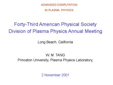 1 ADVANCED COMPUTATION IN PLASMA PHYSICS