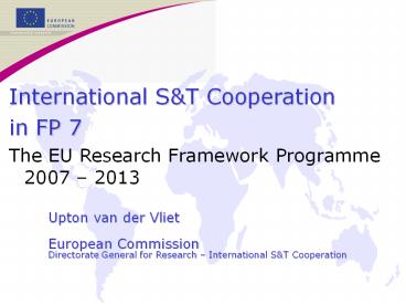 1 International ST Cooperation in FP 7 The EU