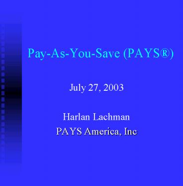 PayAsYouSave PAYS PowerPoint PPT Presentation