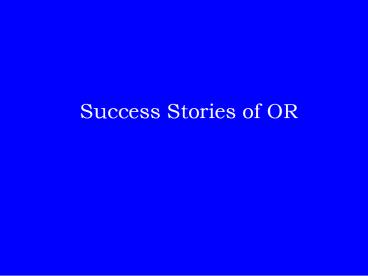 million in annual savings - UPS use O.R. to redesign its overnight delivery
