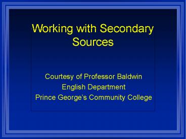 <Notice: Removed> Working with Secondary Sources PowerPoint PPT Presentation