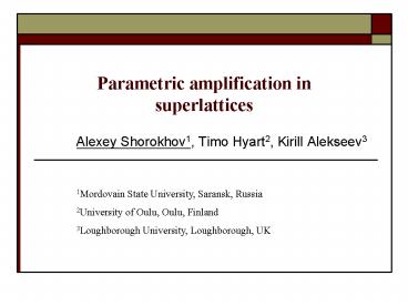 Title: Alexey Shorokhov1, Timo Hyart2, Kirill Alekseev3