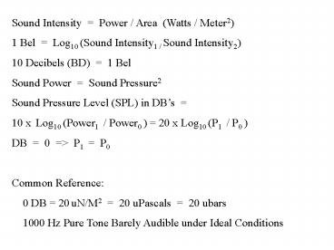 Sound Intensity = Power / Area (Watts / Meter2) PowerPoint PPT Presentation
