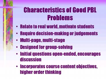 Characteristics of Good PBL Problems PowerPoint PPT Presentation