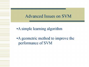 1Advanced Issues on SVM