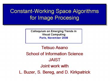 Title: ConstantWorking Space Algorithms for Image Procesing