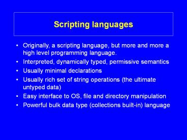 more a high level programming language. - Interpreted, dynamically typed, permissive
