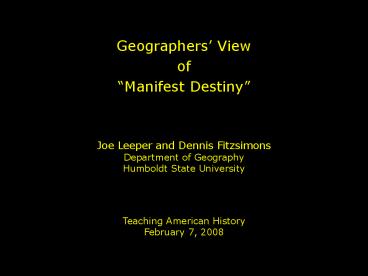 1Geographers View of Manifest Destiny Joe