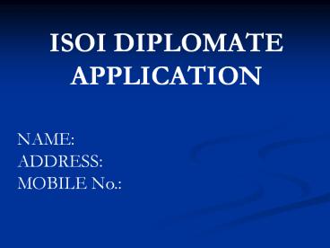 ISOI DIPLOMATE APPLICATION PowerPoint PPT Presentation