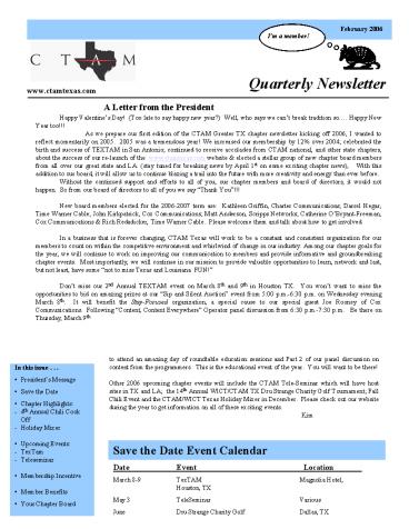 CTAM membership. - To join CTAM of Texas, contact Tonia