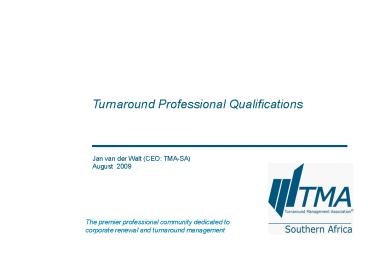 Africa in 2010 - The Certified Turnaround Professional (CTP)