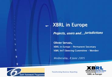 <Notice: Removed> XBRL in Europe Projects, users and PowerPoint PPT Presentation