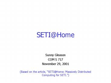 SETIHome PowerPoint PPT Presentation