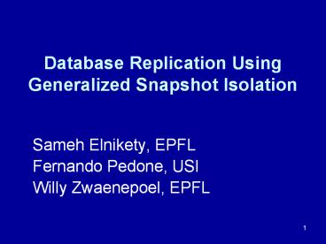 Title: Database Replication Using Generalized Snapshot Isolation