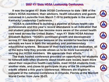 ... Webster Co. HOSA President Katie Smith Jr., and Webst PowerPoint PPT Presentation