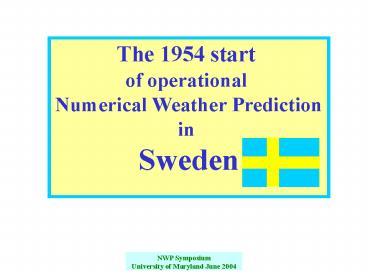 (Bergthorsson-Döös, 1955) -Not too small NWP area