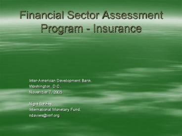 Financial Sector Assessment Program Insurance PowerPoint PPT Presentation