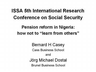 ISSA 5th International Research Conference on Social Security PowerPoint PPT Presentation