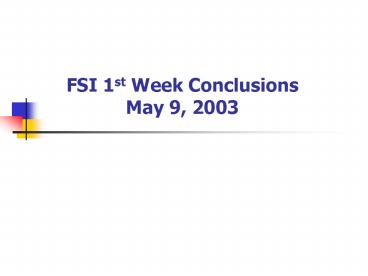 Title: FSI 1st Week Conclusions May 9, 2003