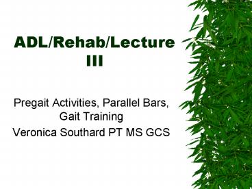 ADLRehabLecture III PowerPoint PPT Presentation