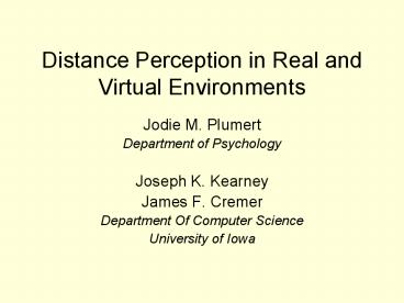 Distance Perception in Real and Virtual Environments PowerPoint PPT Presentation