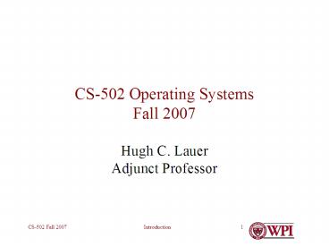 <Notice: Removed> CS502 Operating Systems Fall 2007 PowerPoint PPT Presentation