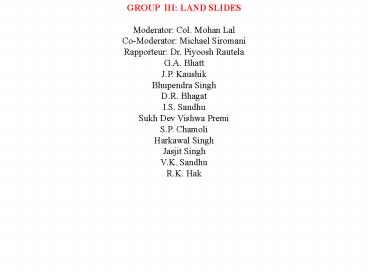 1GROUP III LAND SLIDES Â Moderator Col. Mohan