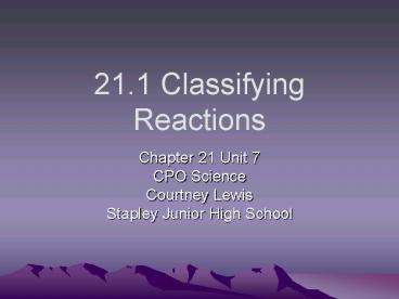 21'1 Classifying Reactions PowerPoint PPT Presentation