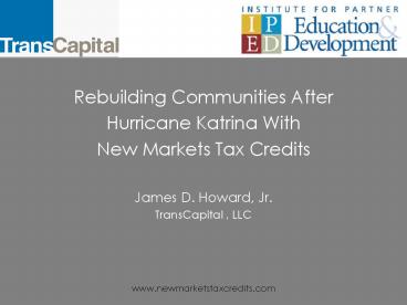 Enta One of the First NMTC GO ZONE Transactions Completed