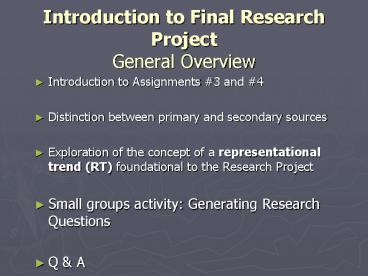 trend (RT) foundational to the Research Project - Small groups activity Generating Research