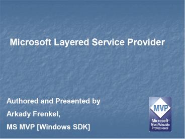 Layered Service Provider By ByWei Hua, Jim Ohlun