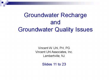 Title: Groundwater Recharge and Groundwater Quality Issues