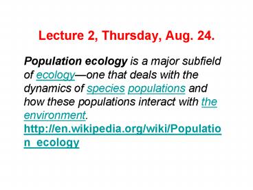 Lecture 2, Thursday, Aug' 24' PowerPoint PPT Presentation