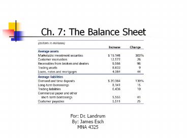 Title: Ch' 7: The Balance Sheet