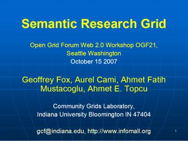 - Open Grid Forum Web 2.0 Workshop OGF21,