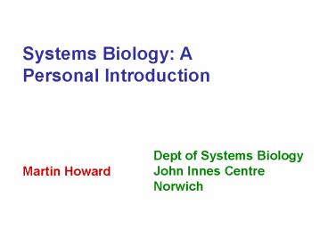 1Systems Biology A Personal Introduction